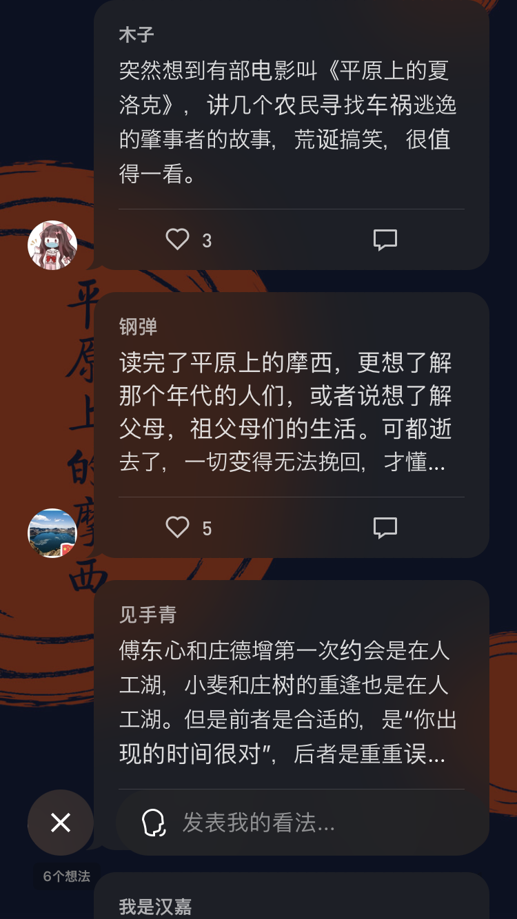 As the growth of WeRead has coincided with the dissemination of the Dongbei Renaissance since the mid- and late 2010s, we can take a closer look at the reading public fostered by this process of digital remediation. Take “Moses on the Plain,” for example. As soon as readers get to the cover of this novella, they are invited to check out the annotations left by others by clicking the prompt on the bottom left corner, which reads “6 thoughts” (6 ge xiangfa 6個想法). These annotations for the novella cover are usually general impressions written by those who have finished reading the story, but for new readers starting the read, the short comments serve as gestures for what to expect from the story. Among the three annotations screenshot in Figure 5, for example, each adds a different focus spanning the genre, theme, and narrative of the story: annotation 1 relates the novella to a film on the similar topic of crime and ordinary individuals, annotation 2 discusses the user’s own impulse to understand the life of their parents and grandparents after reading this story, and annotation 3 gives a closer reading on the story plot. Diverse as these annotations stand, it is their digital convergence that makes up an interlinked archive of plural affects and interpretations in response to the original text. If the original text has focused on the local settings of Dongbei for repressed memories to reemerge, the interactive and diffusive practice of digital annotations offers a condition for readers from different backgrounds to establish an intersubjective dialogue with the stories of Dongbei. Just as annotation 2 points out, the experience of Dongbei is only a starting point that invites the excavation of memories in other families. Throughout this process, what digital media have remediated is not merely a mode of reading and interlinked storytelling but also a larger public of remembrance across locales and generations.