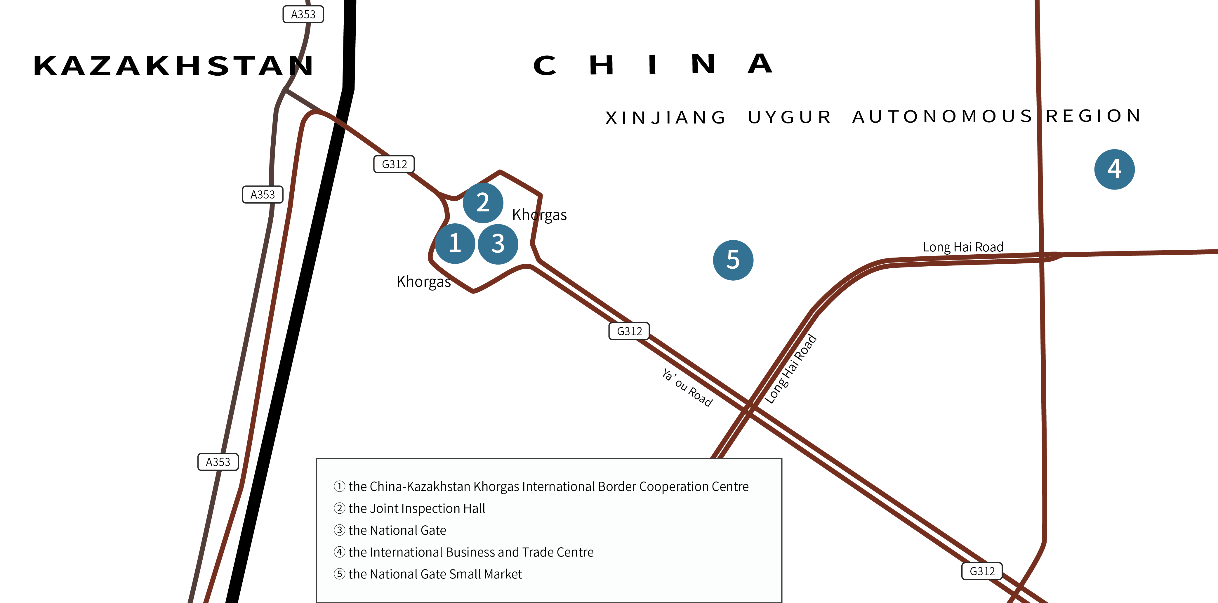 Figure 3. Local map of Khorgas Port on the China-Kazakhstan border