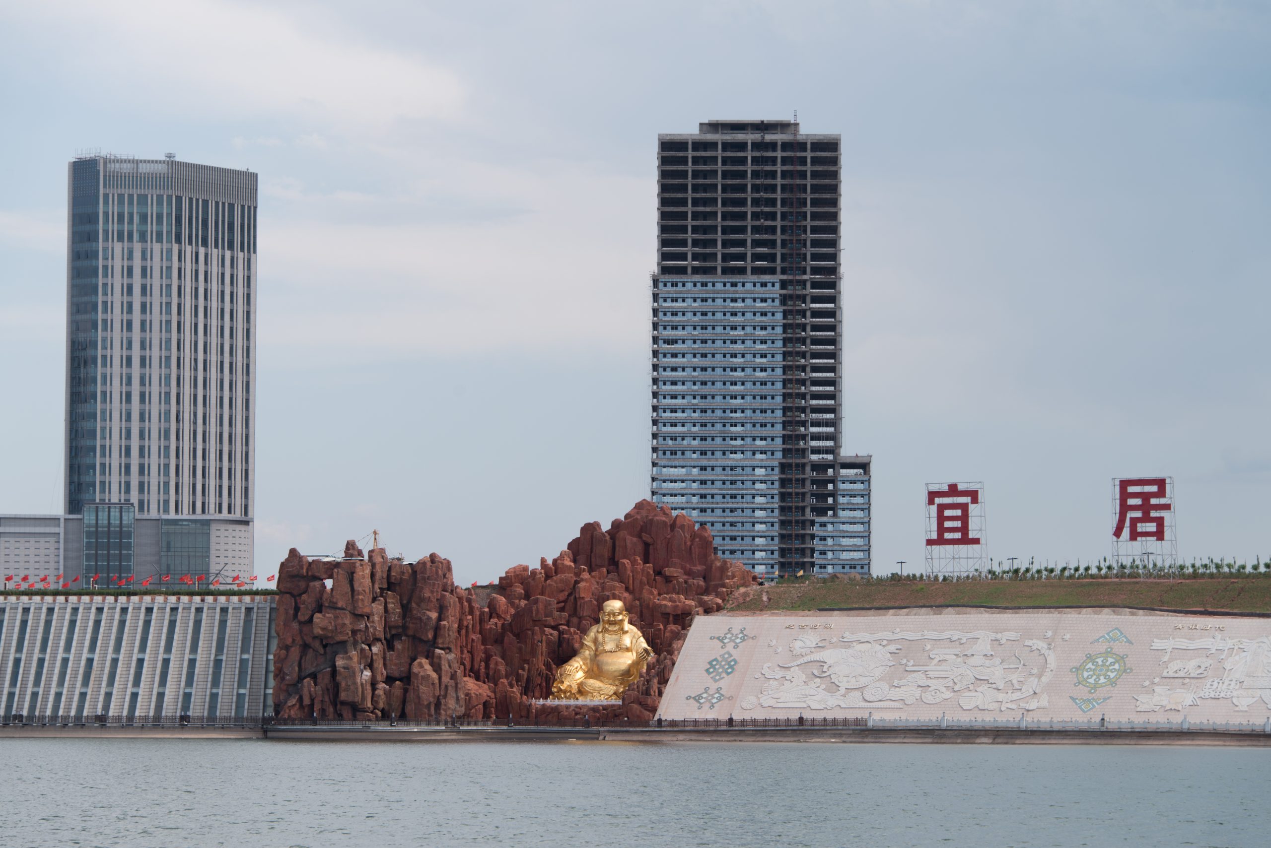 As the ghost city phenomenon became more widely reported after 2010, more ghost cities were located around China and images of the sites drew global attention. Along with the immense scale the images of ghost cities conveyed, a feature of the towns repeatedly shown in photos was their eerie emptiness, as though to confirm the ghostly character of these new urban developments. Kai Caemmerer’s photographic series, Unborn Cities,[13] exemplifies this manner of depicting the sites. In his photos, lighting and composition generate a palpable sense of doom in ghost cities. The depicted sites are empty, while buildings appear in the distance through layers of gauzy atmosphere.