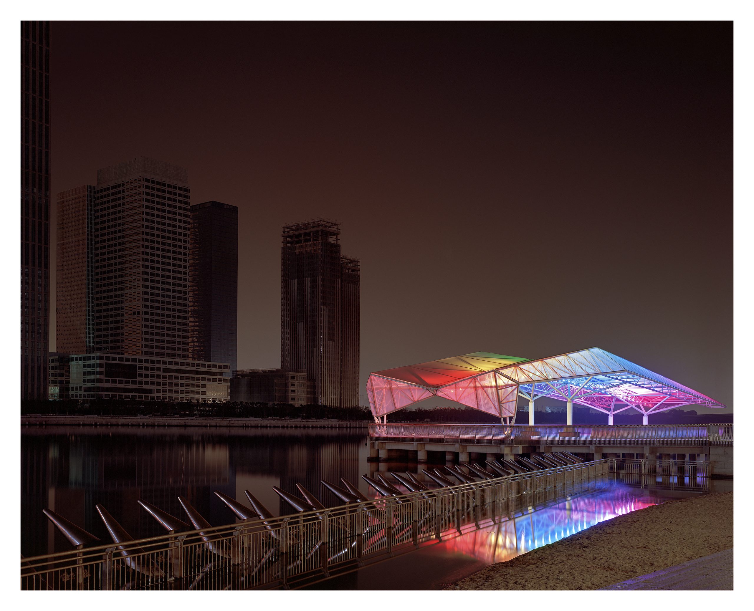 My own images of Kangbashi and the Tianjin Binhai New Area, both new towns labelled ghost cities in news reports and featured in Caemmerer’s series, also show places that are empty, or mostly empty (Figures 9 and 10). There is an undeniable truth to the absence of population that legitimated much of the ghost city trope. Kangbashi, for example, was believed to have less than 10,000 full-time inhabitants in 2010, when sufficient housing had been built for nearly 200,000 people. A similar pattern whereby construction far outpaced new settlement in new towns produced multiple cases featuring similar landscapes of seeming abandonment and emptiness. The tendency among urban administrations to foster quick urban growth in order to reap political and economic benefits powered this surge in growth, fuelled as well by private capital seeking potentially huge profits in China’s burgeoning real estate sector. What I have elsewhere termed China’s “urban speed machine” (Chien and Woodworth 2018) describes a growth coalition for which speed is of the essence.