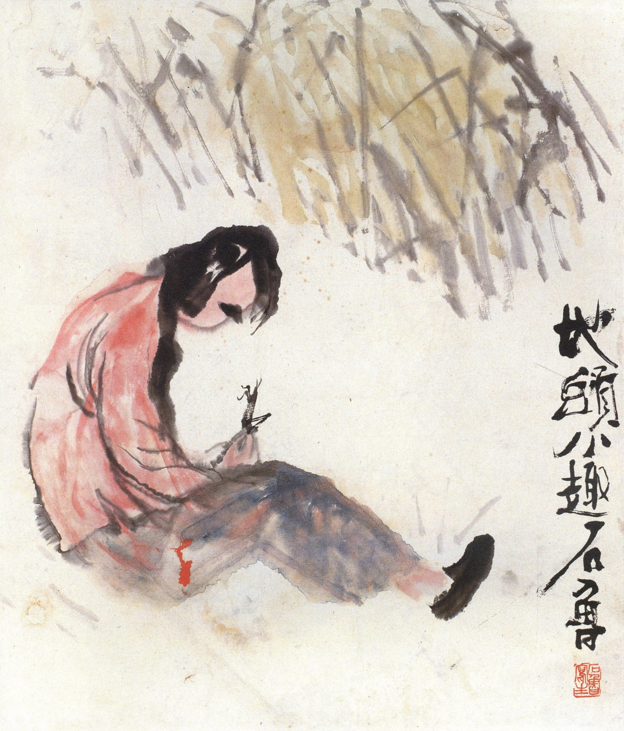 Figure 7. Shi Lu 石魯, Looking at the Grasshopper (Ditou xiao qu 地頭小趣). 1963. Ink and colour on paper. 51 x 43 cm. Credit: Shi Dan.