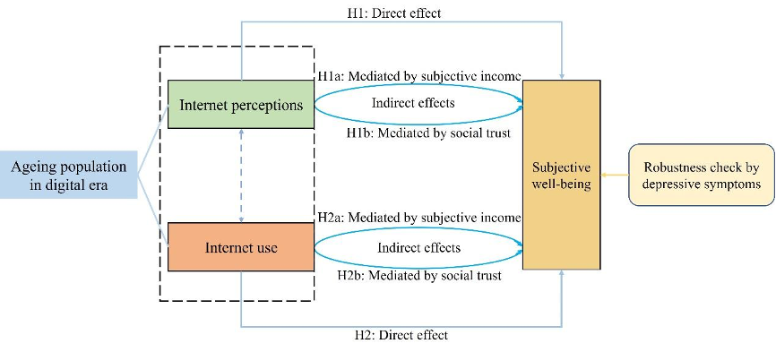 H2b: Social trust plays a mediating role in the association between internet use and subjective well-being among older adults.