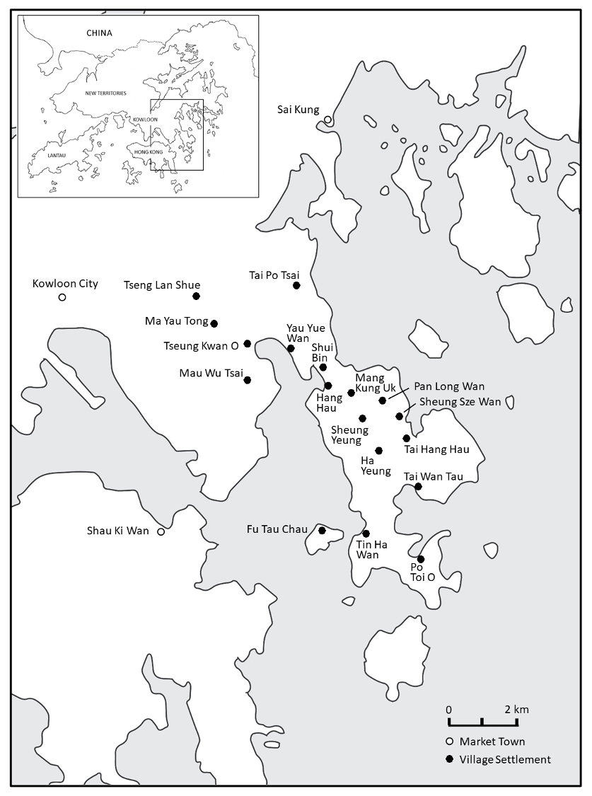 The Hakka ancestors of the Hang Hau villagers chose to settle in the Clear Water Bay Peninsula in the eastern part of Hong Kong[13] (see Figure 1) (Hayes 1974; Siu 1986: 170-82; Ma 2002; Ma et al. 2003; Ye 2018). In these hilly areas, villagers could not grow sufficient rice for their own consumption, and had to supplement rice with sweet potatoes. As their settlements were not far away from the coast, they also fished and collected shellfish to supplement their diets.