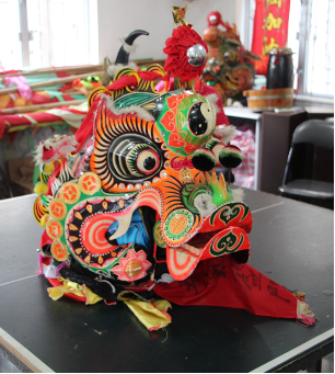 In the past, practicing and watching unicorn dance was one of the villagers’ major sources of entertainment. In Hang Hau, boys started their martial arts training at an early age, with village elders acting as their instructors. The front yard of the ancestral hall was the venue for this martial arts training, of which the unicorn dance was a crucial part. Unicorn heads were once precious items[20] that would only be used in actual rituals or public performances, and bamboo baskets would be used in training sessions as substitutes. The boys would get very excited if they were allowed to play with the real unicorn heads – an implicit endorsement of their dancing skills.