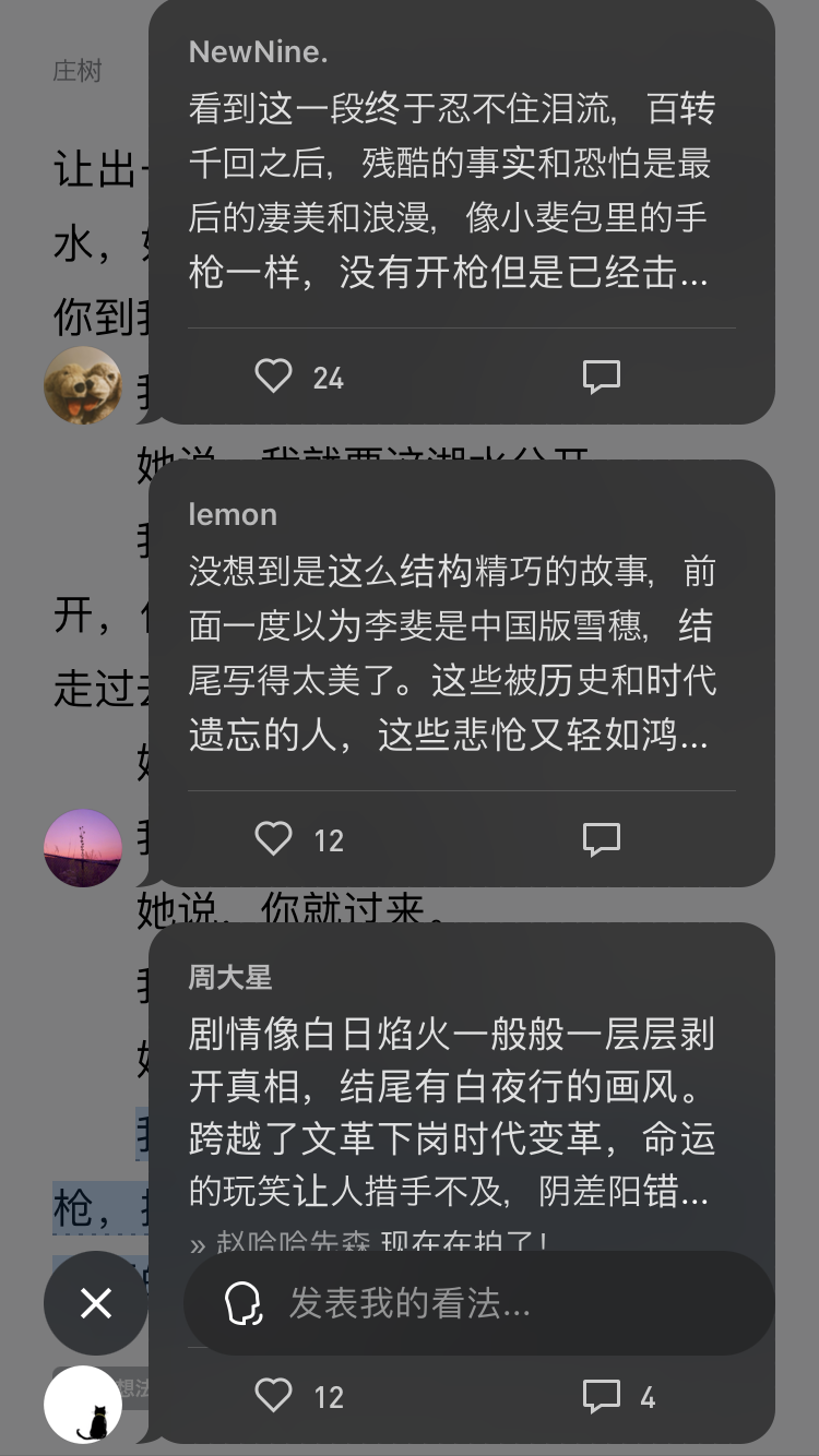 Second, while many reading apps allow their readers to leave private annotations in the text, WeRead has made a radical move by giving its users the option to make their annotations public in the platform and, in this way, to communicate their own thoughts and feelings with others while reading a text.[12] Therefore, when a user reads a text in WeRead, the process is always interactive and manifold: in addition to engaging with the original text, the user may choose to view what others have commented, respond to others, or leave their own annotations to the text. While the reading practice of leaving interlinked annotations has a rich tradition in classical Chinese literature (Wei 2022), this digital form of literary annotations in WeRead has also been influenced by a participatory culture of bullet-commenting (danmu 彈幕) from new millennial Chinese video cultures (Yao et al. 2019). Characterised by an aesthetic feature of a digital screen filled with running streams of commentaries from users, the bullet-comment culture spread from video platforms to experimental television and cinema by the mid-2010s (Jinying Li 2017). In more recent years, furthermore, bullet-commenting has been dispersed and applied widely in various digital media platforms spanning video sharing, live-streaming, and podcast streaming as an interactive feature for users to put down their instantaneous reactions to the content and to respond to each other. As part of this interactive digital media turn, literary annotations in WeRead function as a type of bullet-commenting not upon videos but upon texts (Yao et al. 2019). In this setup, it should be noted that several levels of digital remediation are taking place and opening up a layered reading of media futurity, not in terms of a linear progression of new media forms, but in terms of the constant reworking and refashioning of established cultural forms within new environments. These layers of digital remediation include: (1) digital revitalisation of the classical print-based practice of literary annotations, (2) remediation of digital screens via textual bullet-comments, and (3) reworking of the bullet-comment culture from video-based commenting (back) to literature/text-based commenting in the wider digital media ecology.